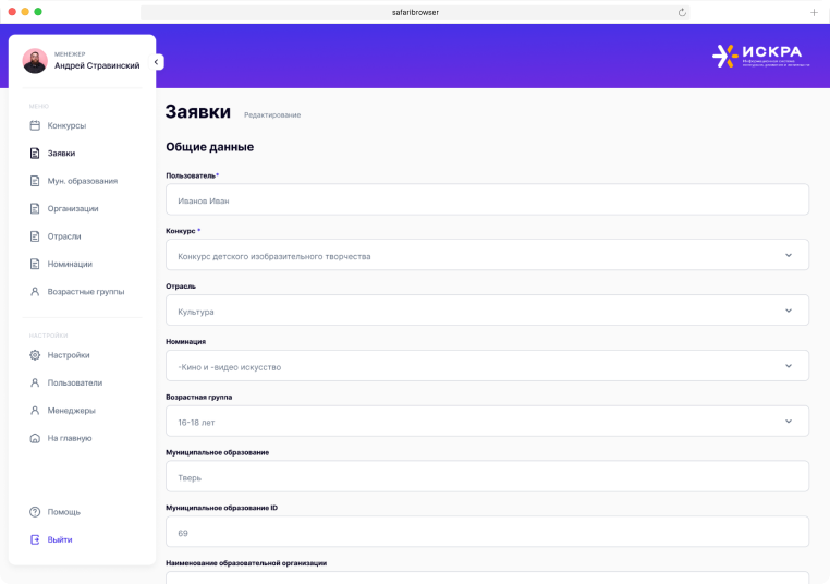 Информационная система для проведения конкурсов